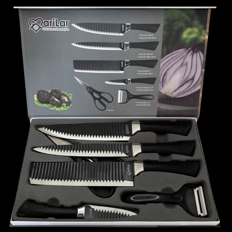 ✓ COMPRA VERIFICADA"Sou churrasqueiro de fim de semana e essa faca do chef é bruta! O cabo não escorrega nada, mesmo com a mão suja de gordura. O kit vale cada centavo."